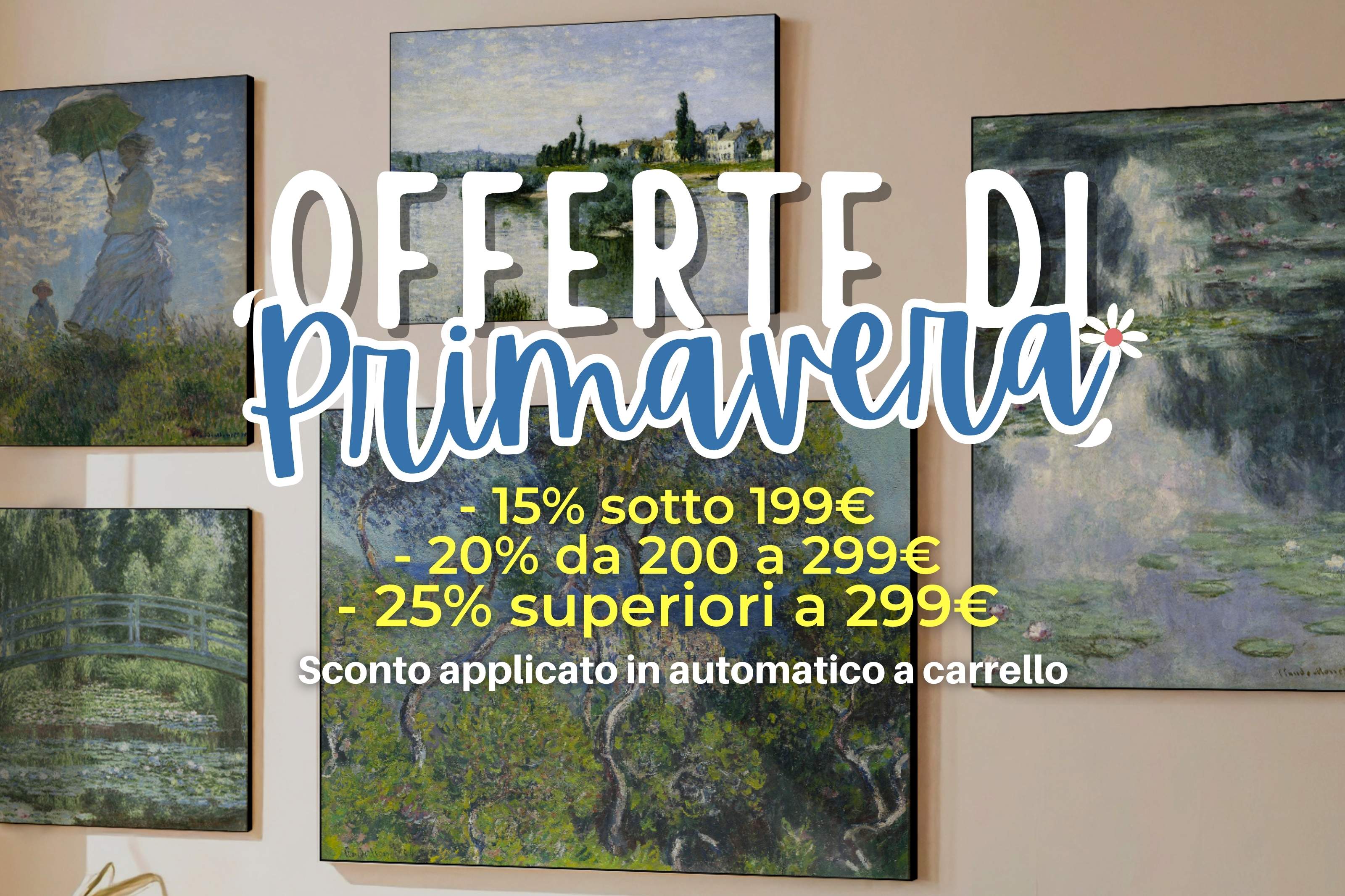 Non tele leggere che perdono forma nel tempo con colori sbiaditi, ma riproduzioni realizzate su pannelli rigidi da 2 cm, con rilievi materici, vernici UV e colori incredibili che restituiscono profondità e pennellate.
