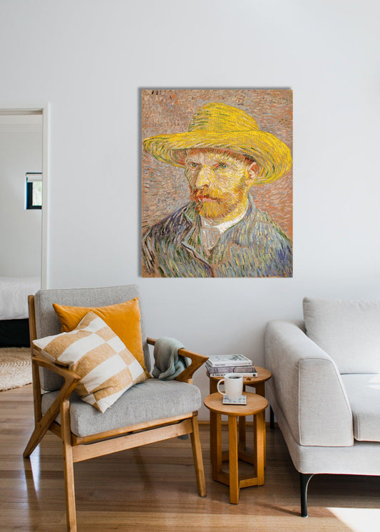 Van Gogh - Autoritratto con cappello di paglia | Stampa piatta HD o in 3D
