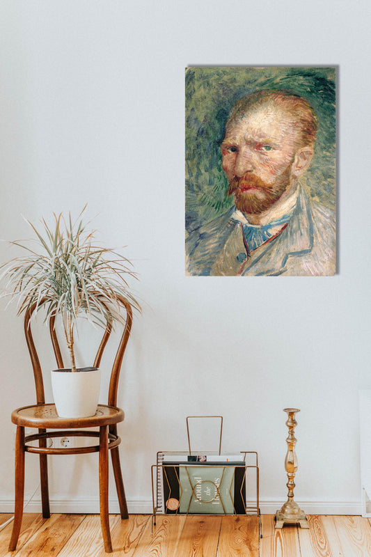 Van Gogh - Autoritratto con sfondo verde | Stampa piatta HD o in 3D