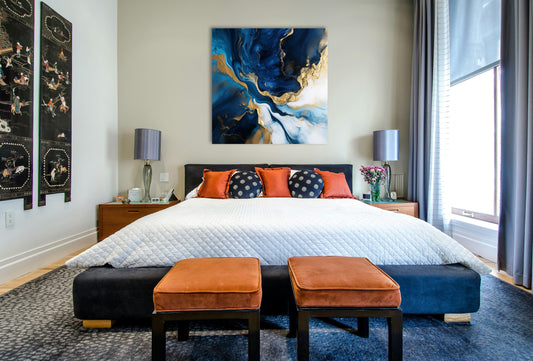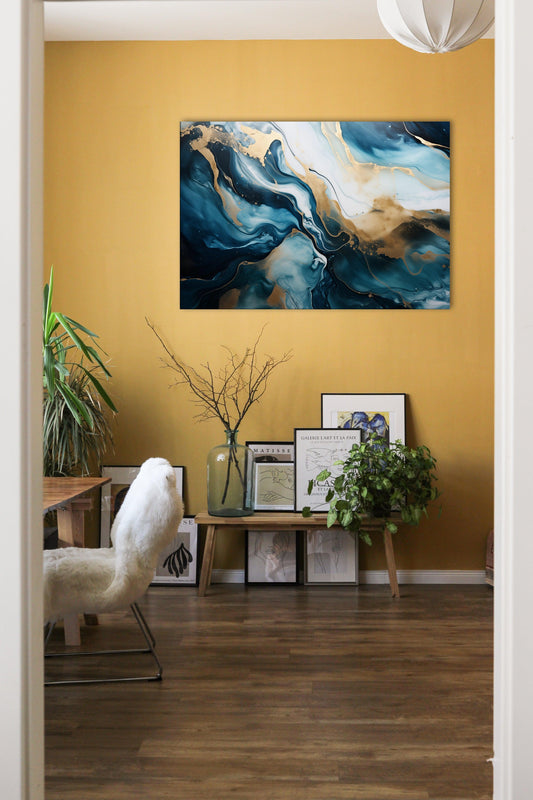 Astratti - Quadro pouring blu e oro HARPER | Effetto lucido