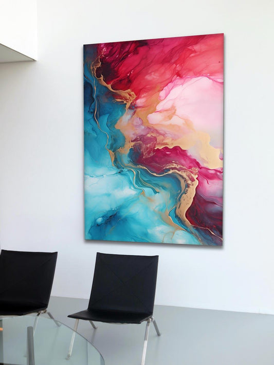 Astratti - Quadro pouring fucsia e azzurro SCARLETT | Effetto lucido