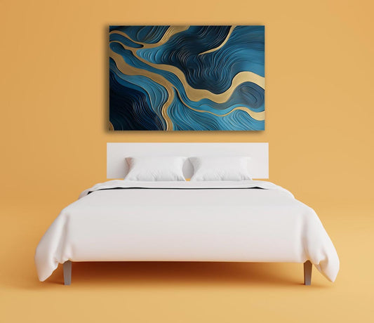 Astratti - Quadro pouring onde blu e oro AURORA | Effetto lucido