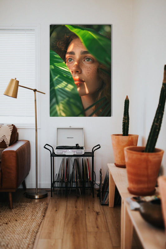Ritratti - Dipinto volto femminile con occhi verdi | Stampa piatta HD o in 3D