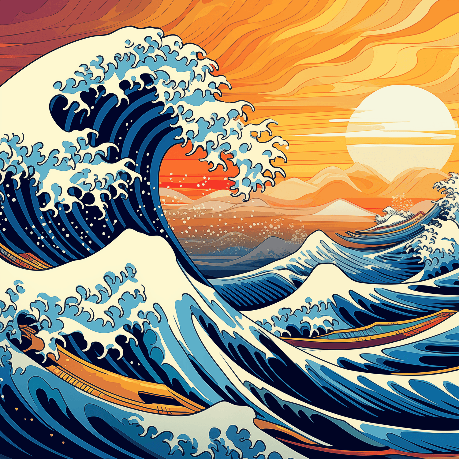 Pop-Art - Hokusai-Welle im Van-Gogh-Stil | HD-Flach- oder 3D-Druck