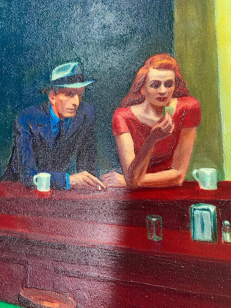 • Hochglanzgemälde werden mit UV-Farbschichten hergestellt, die einige Teile des Gemäldes glänzend und reflektierend machen