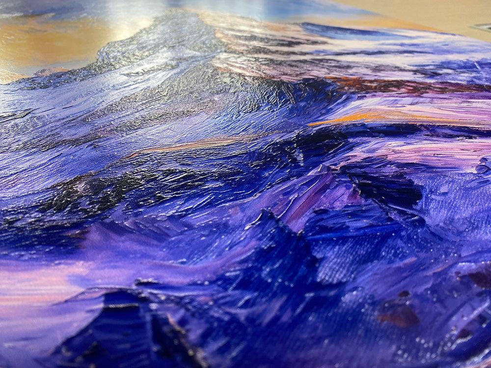 Il risultato non è una semplice stampa, ma un’opera tridimensionale su pannello rigido da 2 cm, capace di restituire con straordinaria fedeltà materica ogni pennellata, ogni sfumatura, ogni vibrazione del colore. Un capolavoro che si vive con gli occhi e con il tatto, progettato per durare nel tempo.