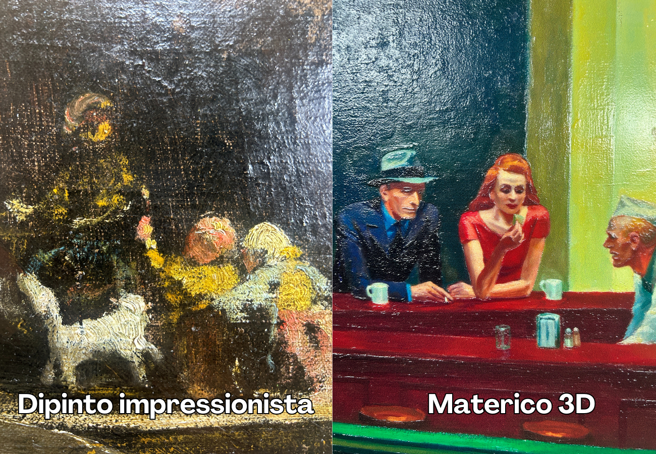 - Le stampe Materico 3D presentano rilievi materici, 11 strati di vernice che ricreano l’effetto delle pennellate originali.