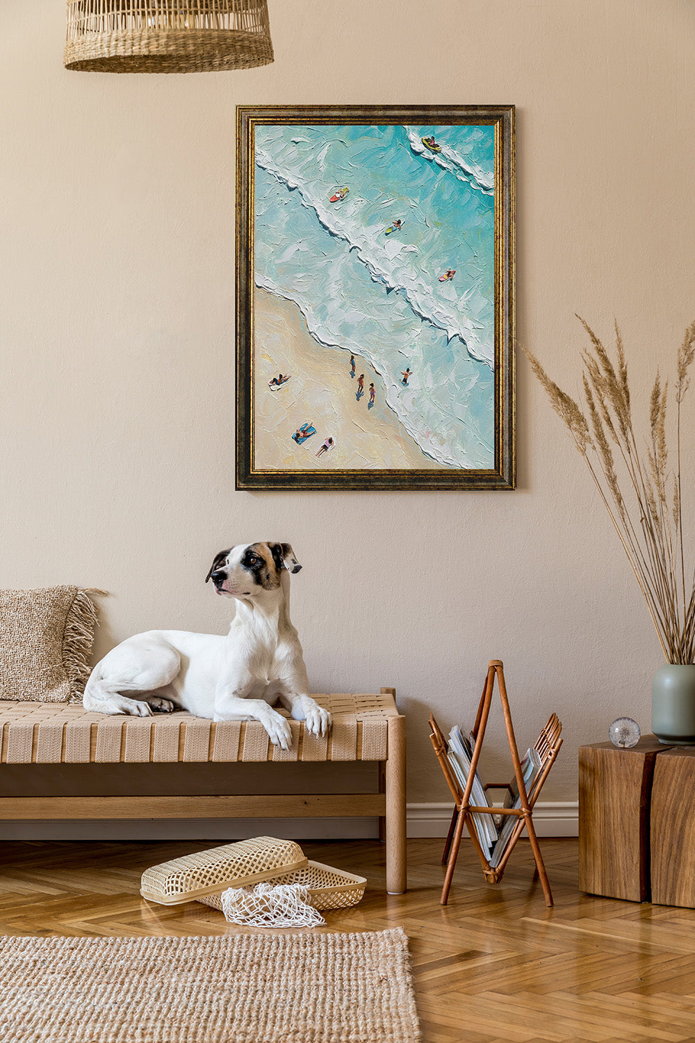 Each Materico work is printed on a 2 cm thick rigid panel, with elegant black edges, designed to offer a solid and refined aesthetic result. Unlike common thin and poorly stretched canvases, our support guarantees stability, presence and durability over time. Each painting arrives ready to hang thanks to the practical metal hooks included in the package, for simple and immediate installation. It is also possible to enrich the work with a frame of your choice: a classic "baroque" frame with a timeless taste or a more essential American frame for a contemporary style.