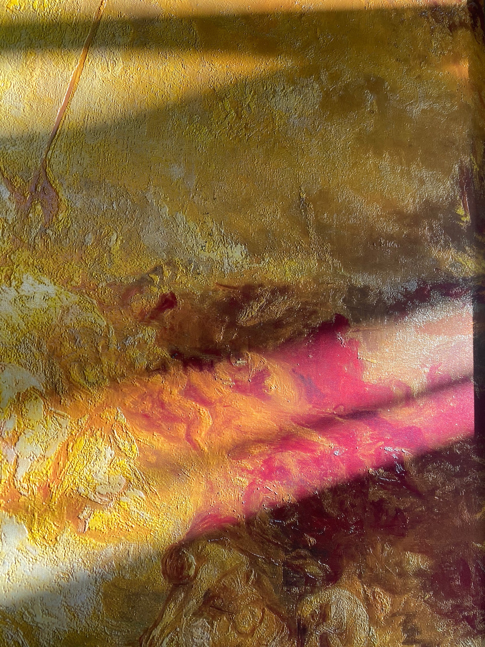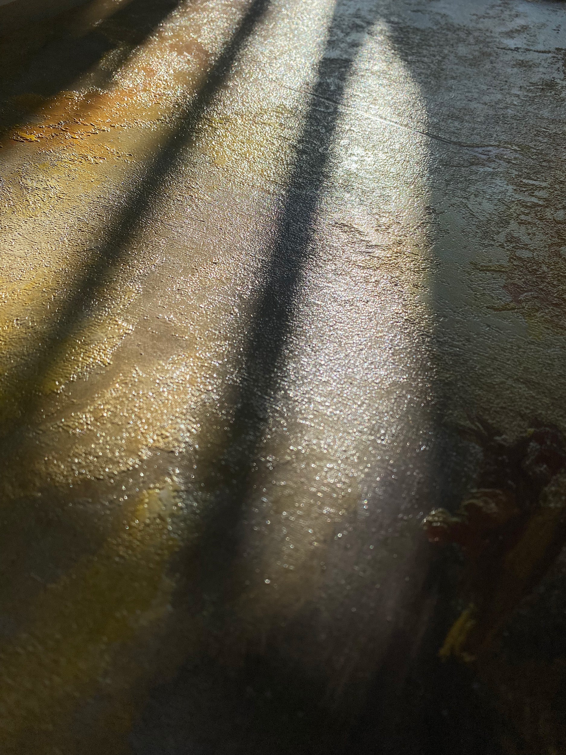 • Glossy paintings are made with a layer of matte print and a layer of glossy varnish localized in some points of the painting, such as cracks or other details that characterize it, so as to enhance them.