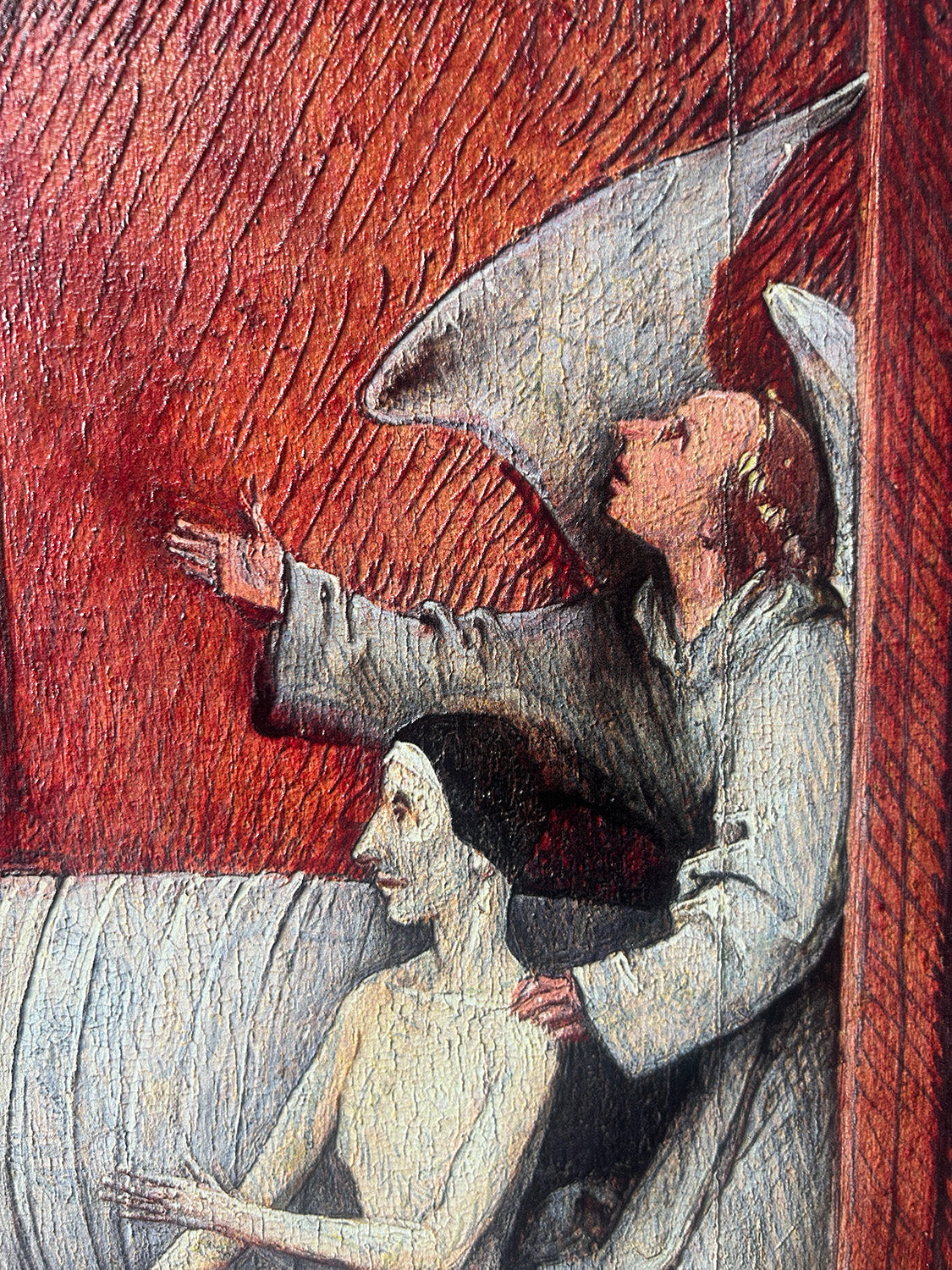 Il nostro quadro materico ispirato a Bosch - La morte dell'avaro è una sua porzione e realizzato con tecnica di stampa UV LED 3D per risaltare il dipinto. La stampa UV LED ci permette di avere colori vibranti e duraturi su un supporto rigido di alta qualità. Sembra di avere un vero e proprio dipinto in rilievo. Per ogni quadro vengono inclusi due ganci per poterlo appendere.