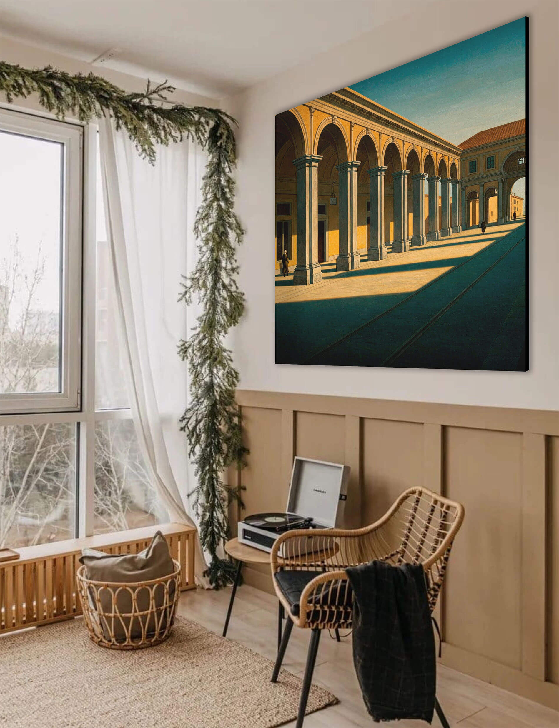 Il nostro quadro materico, Ispirazione De Chrico - Archi del passato, è realizzato con tecnica di stampa UV LED 2.5D per risaltare il dipinto, offrendo un effetto unico. La stampa UV LED ci permette di avere colori vibranti e duraturi su un supporto rigido di alta qualità. Sembra di avere un vero e proprio dipinto in rilievo Per ogni quadro vengono inclusi due ganci per poterlo appendere.