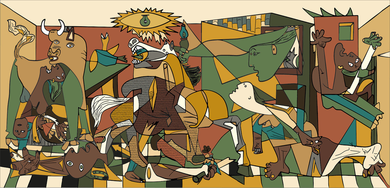Ispirazione Picasso - Guernica in stile barocco | Stampa piatta HD o in 3D