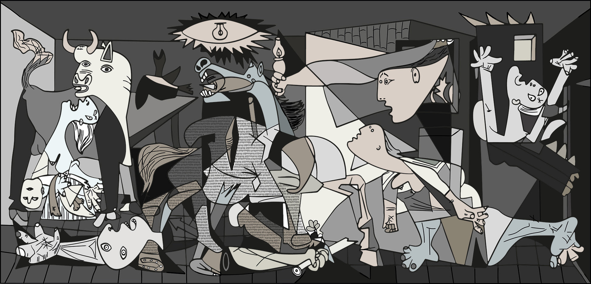 Picasso - Guernica monocromatico | Stampa piatta HD o in 3D