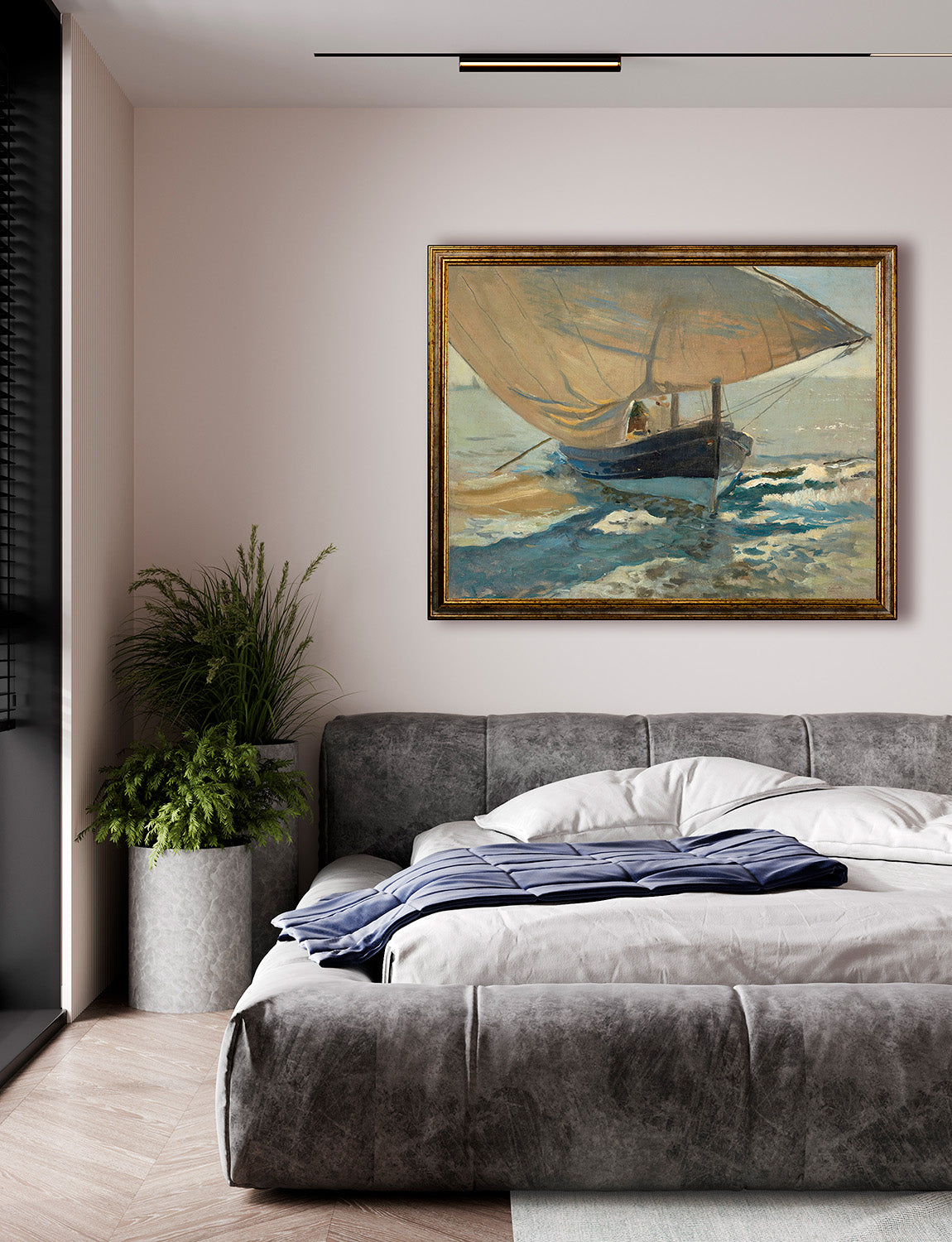 Joaquin Sorolla - Barche da pesca sulla spiaggia | Stampa piatta HD o in 3D