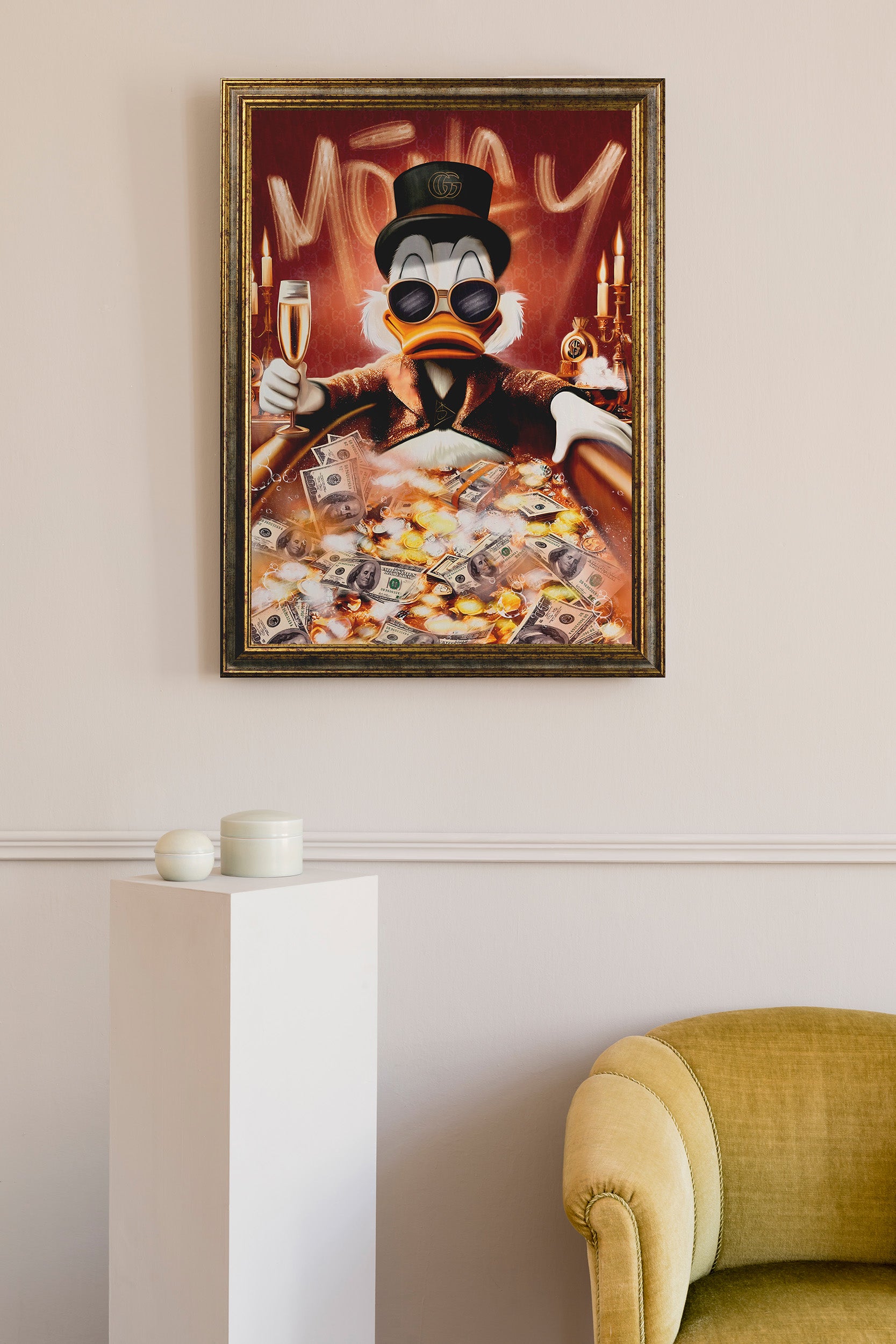 Ogni opera Materico è stampata su un pannello rigido spesso 2 cm, con eleganti bordi neri, pensato per offrire un risultato estetico solido e raffinato. A differenza delle comuni tele sottili e poco tese, il nostro supporto garantisce stabilità, presenza e durata nel tempo. Ogni quadro arriva pronto da appendere grazie ai pratici ganci in metallo inclusi nella confezione, per un’installazione semplice e immediata. È inoltre possibile arricchire l’opera con una cornice a scelta: una classica cornice "barocca" dal gusto intramontabile oppure una più essenziale cornice americana per uno stile contemporaneo.