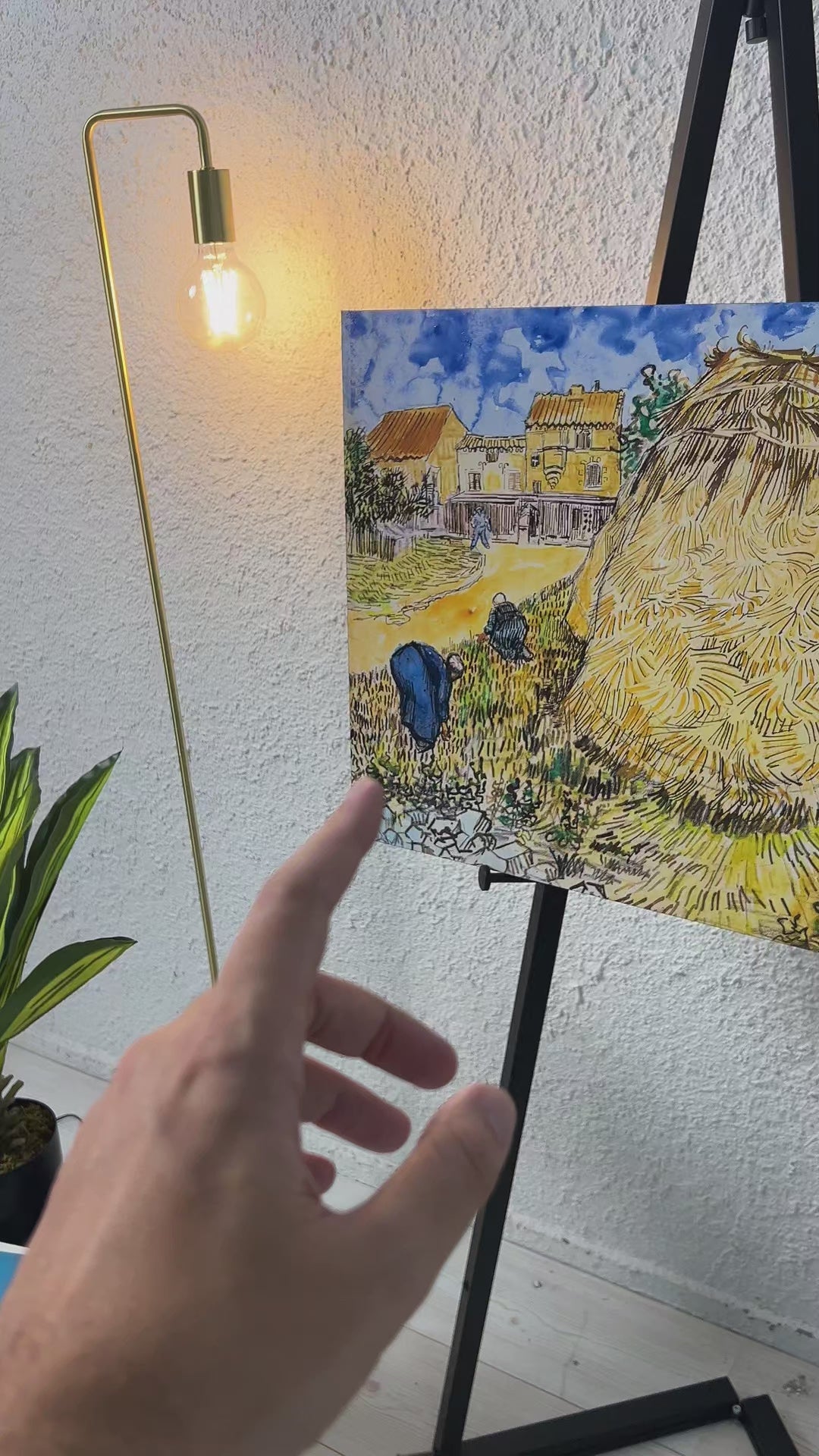 Il nostro quadro materico, ispirato al capolavoro delle Cataste di grano di Van Gogh, è realizzato con tecnica di stampa piatta HD o con tecnologia 2.5D UV LED per ricreare la matericità del soggetto , offrendo un effetto 2.5D unico. La stampa UV LED ci permette di avere colori vibranti e duraturi su un supporto rigido di alta qualità. Sembra di avere un vero e proprio dipinto ad olio. Con ogni quadro sono inclusi 2 ganci per poterlo appendere.