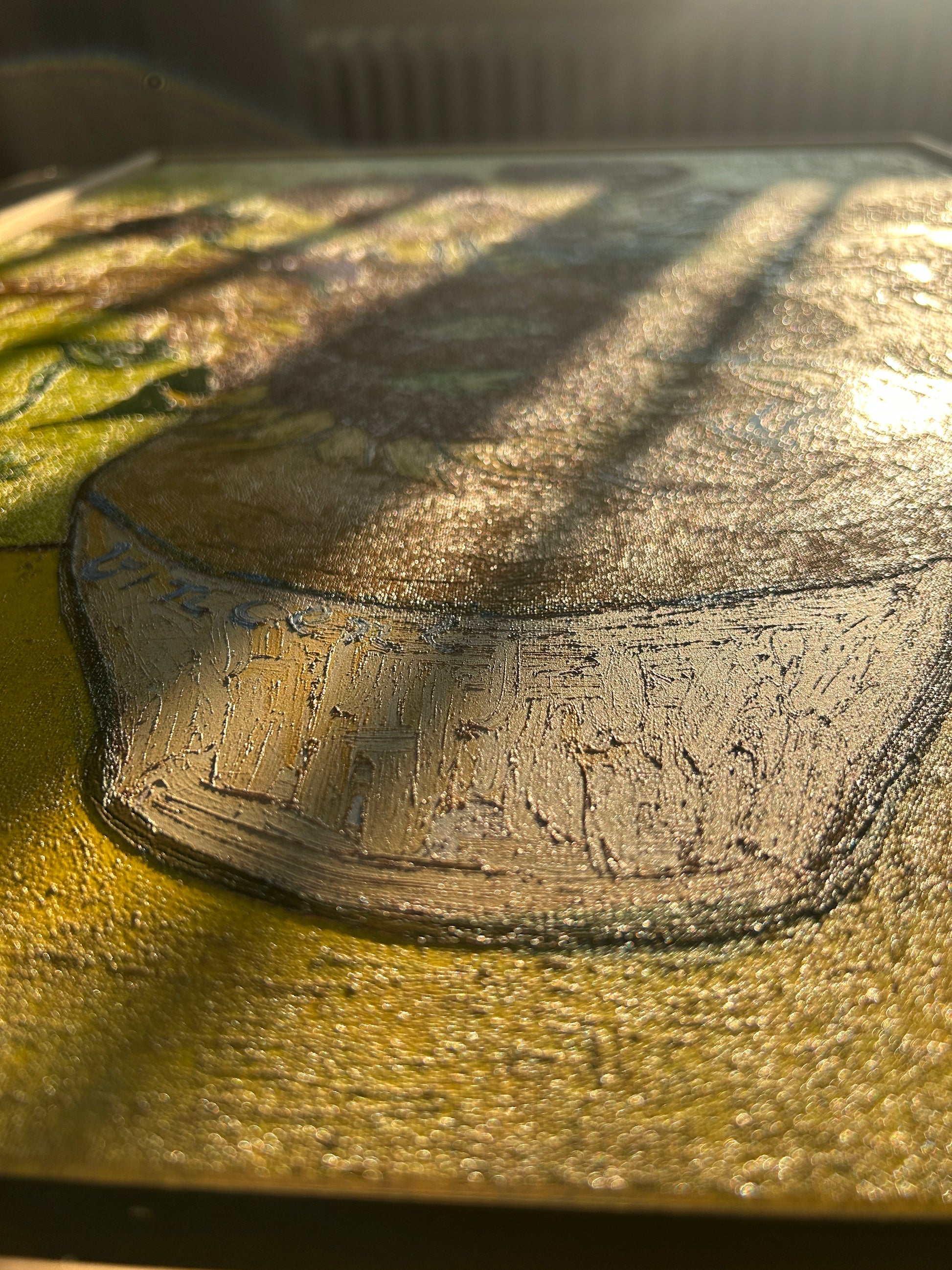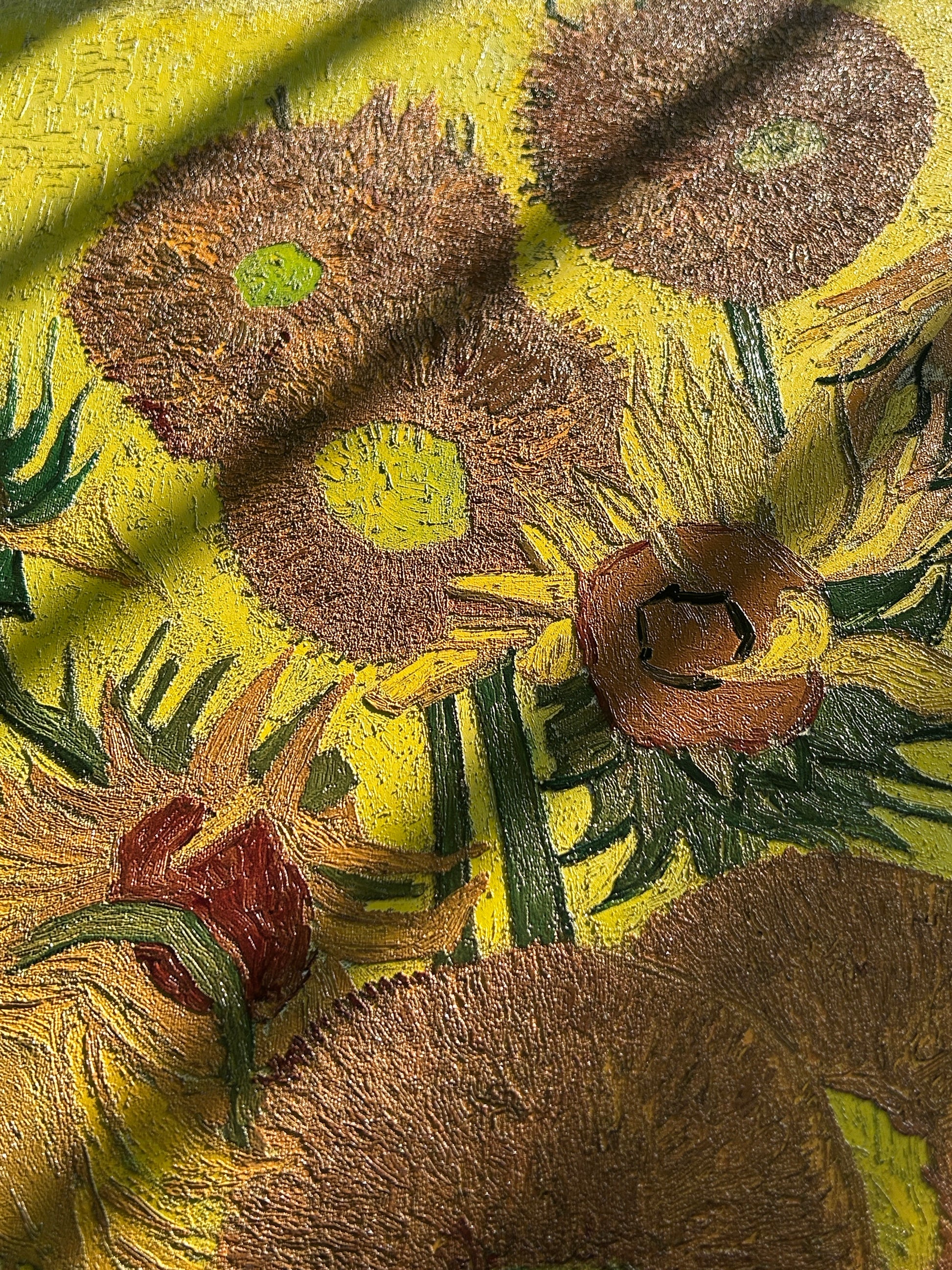 Il risultato non è una semplice stampa, ma un’opera tridimensionale su pannello rigido da 2 cm, capace di restituire con straordinaria fedeltà materica ogni pennellata, ogni sfumatura, ogni vibrazione del colore. Un capolavoro che si vive con gli occhi e con il tatto, progettato per durare nel tempo.